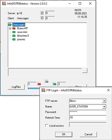 In order to guarantee an effective and secure data transfer the FTP protocol is used. Simultaneous transfers of files - from one computer into several destinations - or data transfer replications are also possible. Data transfer process can be monitored online using InfoDISTRIBstatus application.